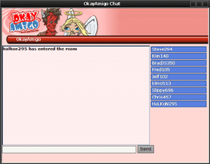 Visit the OkayAmigo chat room and talk with other members that are online at the same time you are. You can invite members for a personal