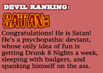 you're a guy) or Angel (if you're a girl) based on your personality. For instance, you might be ranked as Satan if you're the most badass